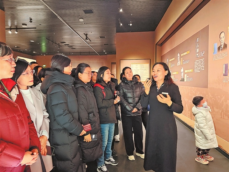 “下面请大家跟随我,一同回溯商文明的探索之路……”赵清荣的声音温润而有力量。她从1928年董作宾先生开启殷墟首次考古发掘讲起,循着时间脉络,将近百年的殷墟考古历程娓娓道来。在“探索商文明”展馆内,她指着展柜中泛黄的考古日记复印件、锈迹斑斑的发掘工具一一介绍,让观众直观感受中国风格考古学的发展轨迹。“历经近百年考古求索,一代古人薪火相传、不懈探寻,终于让沉睡三千年的文明密码重见天日。”赵清荣的讲解深入浅出。来自郑州的游客李女士说:“新年第一堂课就听馆长讲殷墟考古,比课本生动百倍,孩子听得入了迷!”